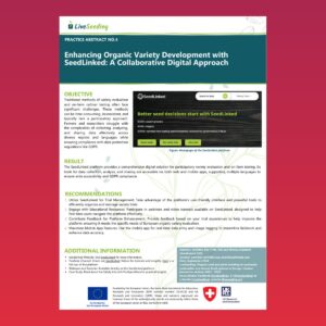 Practice abstract on SeedLinked: a multilingual, GDPR-compliant web and mobile platform for participatory on-farm variety evaluation, with recommendations for trial management, training and user feedback.