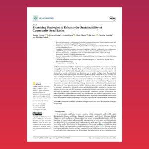 Analysis of sustainability challenges for community seed banks (India, Kenya, Nepal, South Africa, Uganda) and five strategies to enhance viability: value addition, nature-positive agriculture, genebank partnerships, networking/digitalization, and low-cost seed-quality tech.