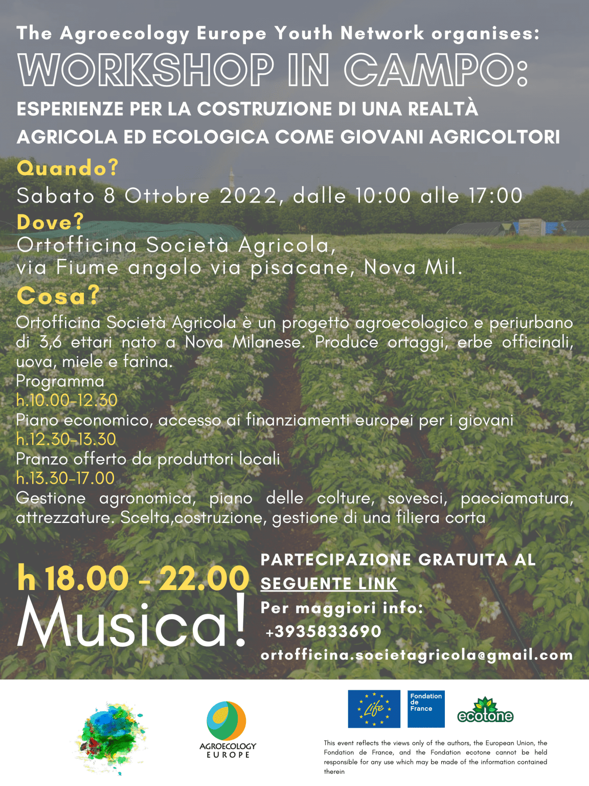 SAVE THE DATE FOR THE PARTICIPATORY WORKSHOP : “HOW TO BUILD AN AGROECOLOGICAL FARM PROJECT AS YOUNG FARMERS?” ON SATURDAY 8TH OF OCTOBER 2022 AT ORTOFFICINA SOCIETÀ AGRICOLA (NOVA MILANESE) – IN ITALIAN