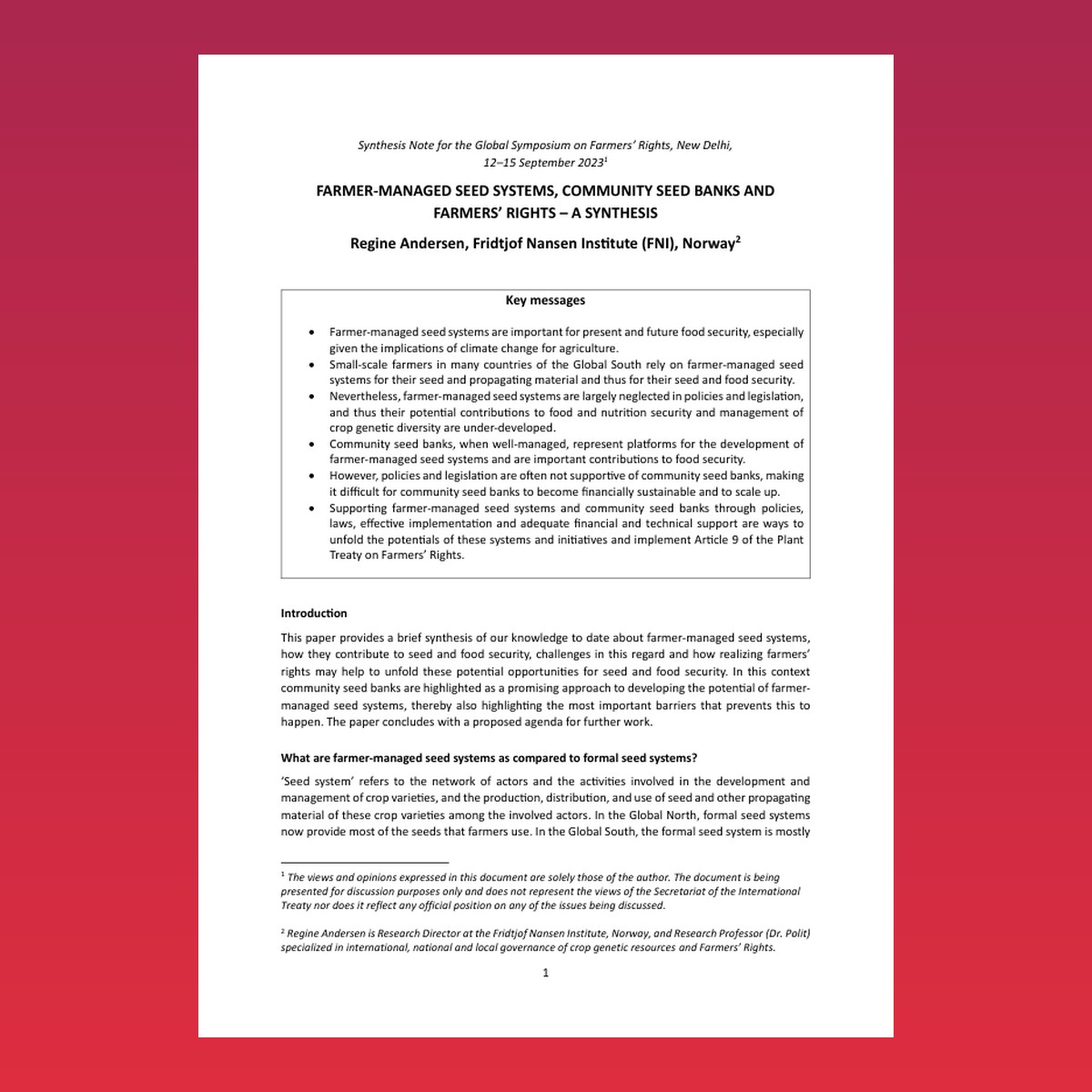FARMER-MANAGED SEED SYSTEMS, COMMUNITY SEED BANKS AND FARMERS’ RIGHTS – A SYNTHESIS