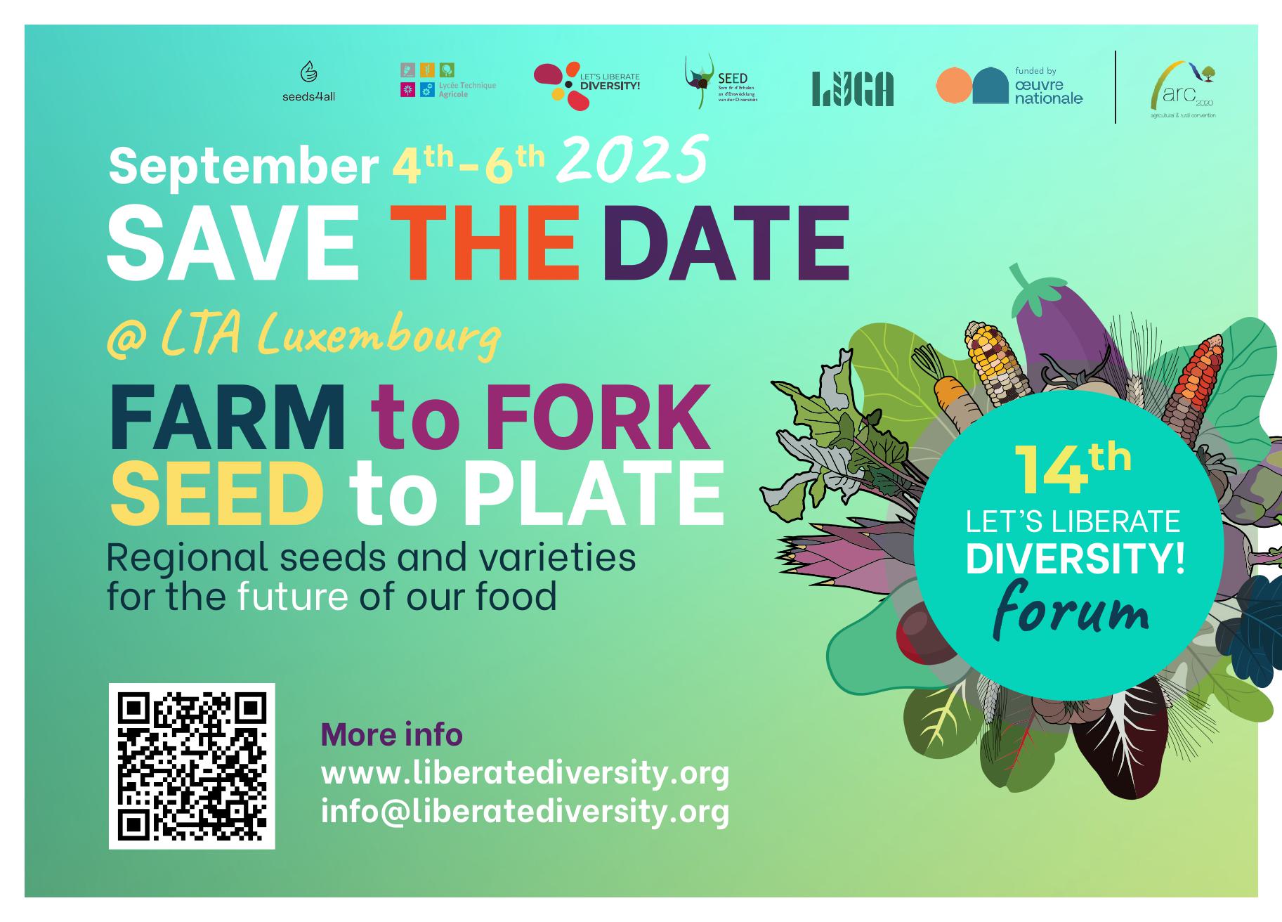SEED, Lycée Technicque Agricole (LTA) Luxembourg and Let’s Liberate Diversity! invite you to participate in the 14th edition of the LLD Forum to come together, exchange and learn about cultivated diversity and dynamic seed management!